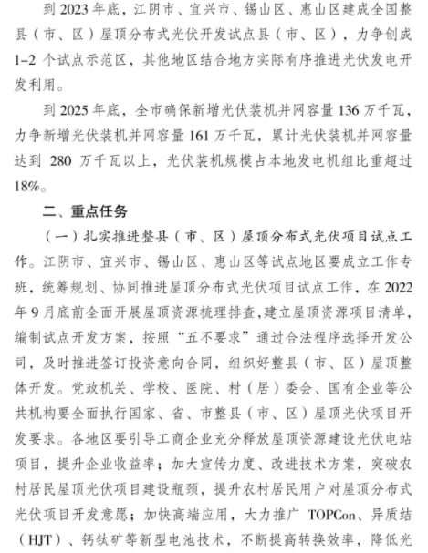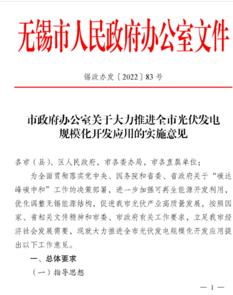 10月11日,江蘇無(wú)錫市政府發(fā)布《關(guān)于大力推進(jìn)全市光伏發(fā)電規(guī);_(kāi)發(fā)應(yīng)用的實(shí)施意見(jiàn)》!秾(shí)施意見(jiàn)》提出,“十四五”期間,對(duì)于完成新增并網(wǎng)目標(biāo),安排光伏發(fā)電補(bǔ)貼資金并落實(shí)補(bǔ)貼的地區(qū),市級(jí)自 2022年起分年度給予補(bǔ)助。對(duì)納入全國(guó)整縣(市、區(qū))屋頂分布式光伏開(kāi)發(fā)試點(diǎn)的地區(qū),最高按其年度實(shí)際發(fā)放光伏發(fā)電專項(xiàng)補(bǔ)貼總