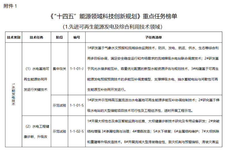 據(jù)國(guó)家能源局:今日,國(guó)家能源局綜合司印發(fā)關(guān)于建立《“十四五”能源領(lǐng)域科技創(chuàng)新規(guī)劃》實(shí)施監(jiān)測(cè)機(jī)制的通知,公布了《“十四五”能源領(lǐng)域科技創(chuàng)新規(guī)劃》重點(diǎn)任務(wù)榜單。