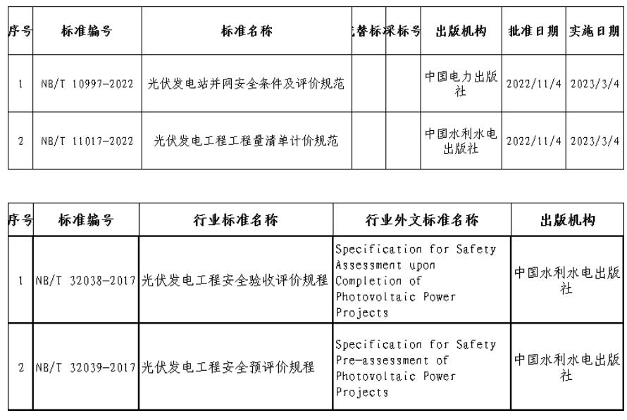 日前,國(guó)家能源局公告發(fā)布2022年第5號(hào),批準(zhǔn)237項(xiàng)能源行業(yè)標(biāo)準(zhǔn),其中光伏相關(guān)標(biāo)準(zhǔn)4項(xiàng)。