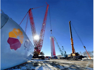 11月16日上午,在吉林油田乾情風(fēng)場3號機組施工現(xiàn)場,伴隨著第一節(jié)重達84噸,直徑5.2米,高22米塔筒的徐徐升起,中石油首個風(fēng)電項目首臺風(fēng)機順利開吊,這也標(biāo)志著吉林油田從傳統(tǒng)石油行業(yè)向新能源融合發(fā)展邁出了嶄新的一步。