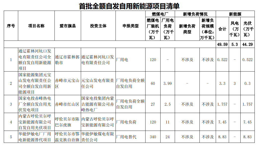 內(nèi)蒙古自治區(qū)能源局關(guān)于印發(fā)首批全額自發(fā)自用新能源項(xiàng)目清單的通知