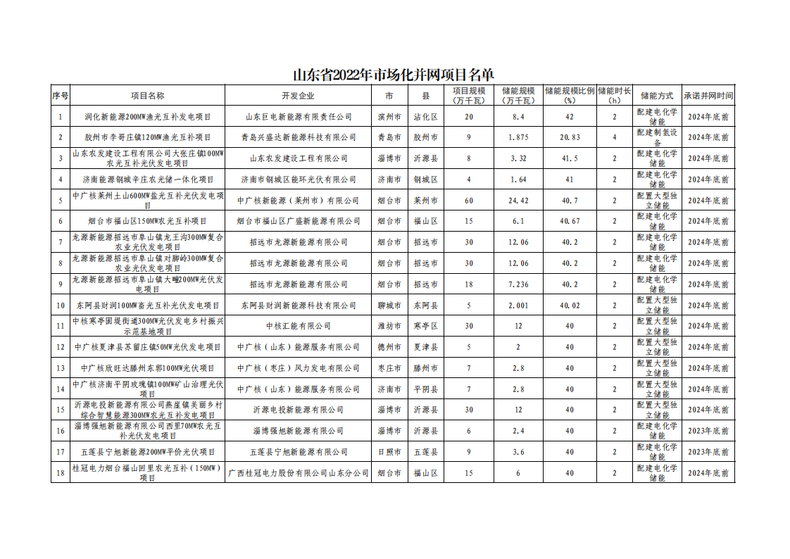 山東省2022年市場化并網(wǎng)項(xiàng)目名單如下: