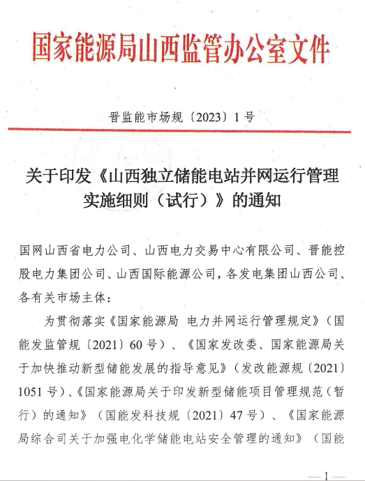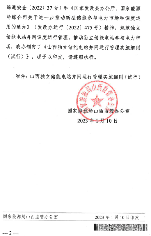 日前,山西能源監(jiān)管辦正式印發(fā)《山西獨(dú)立儲能電站并網(wǎng)運(yùn)行管理實(shí)施細(xì)則(試行)》,全文如下: