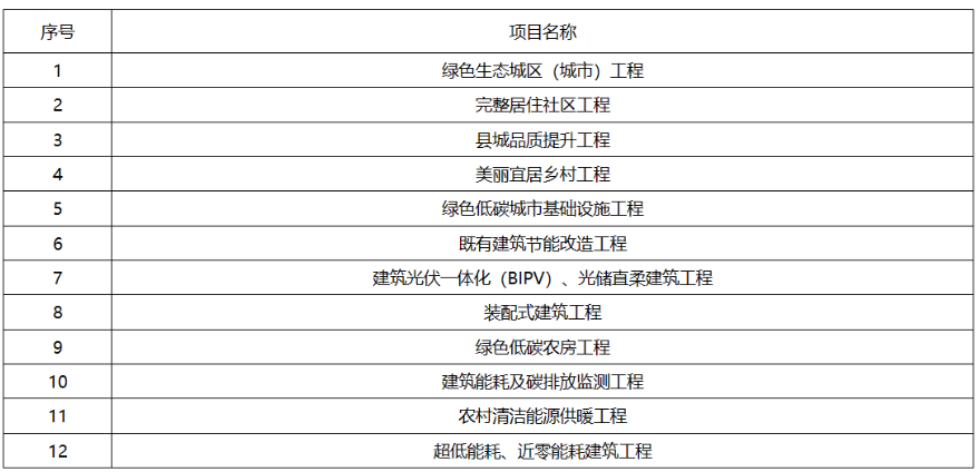 綠色低碳工程項目清單如下: