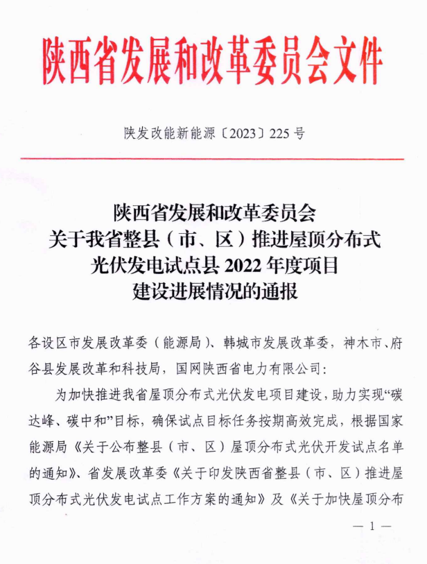 據(jù)榆林市發(fā)改委官網(wǎng),近期,陜西省發(fā)改委對(duì)全省整縣(市、區(qū))推進(jìn)屋頂分布式光伏發(fā)電試點(diǎn)縣2022年度項(xiàng)目建設(shè)進(jìn)展情況進(jìn)行了通報(bào)。根據(jù)通報(bào),2022年度,陜西省26個(gè)試點(diǎn)縣自然人戶用光伏并網(wǎng)容量7.15 萬(wàn)千瓦;非自然人屋頂分布式光伏備案容量121萬(wàn)千瓦,并網(wǎng)容量17.4萬(wàn)千瓦,全省試點(diǎn)縣屋頂分布式光伏建設(shè)完