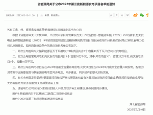 日前,湖北省能源局發(fā)布關于公布2022年第三批新能源發(fā)電項目名單的通知。根據(jù)通知,此次公布的風光火儲新能源百萬千瓦基地(二期)項目共計2個,容量40萬千瓦,均為光伏發(fā)電項目。常規(guī)風電和光伏發(fā)電項目共計4個,容量38萬千瓦。其中:風電項目3個、容量28萬千瓦;光伏發(fā)電項目1個、容量10萬千瓦。通知明確,此次公布的風電項