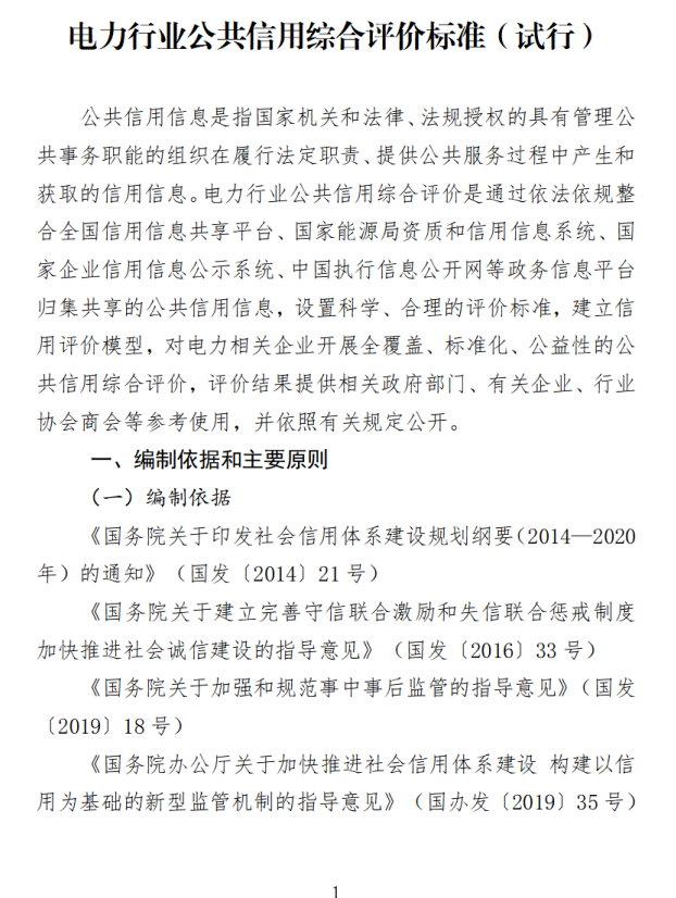 為貫徹落實(shí)黨中央、國(guó)務(wù)院關(guān)于推進(jìn)社會(huì)信用體系建設(shè)高質(zhì)量發(fā)展的決策部署,進(jìn)一步強(qiáng)化電力行業(yè)信用分級(jí)分類(lèi)監(jiān)管,國(guó)家能源局編制了《電力行業(yè)公共信用綜合評(píng)價(jià)標(biāo)準(zhǔn)(試行)》,現(xiàn)予印發(fā)實(shí)施。