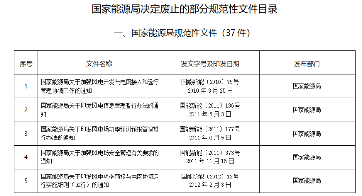國(guó)家能源局決定廢止的部分規(guī)范性文件目錄如下:
