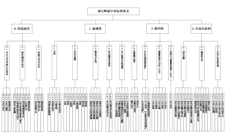 碳達(dá)峰碳中和標(biāo)準(zhǔn)體系包括基礎(chǔ)通用標(biāo)準(zhǔn)子體系、碳減排標(biāo)準(zhǔn)子體系、碳清除標(biāo)準(zhǔn)子體系和市場化機(jī)制標(biāo)準(zhǔn)子體系等4個(gè)一級(jí)子體系,并進(jìn)一步細(xì)分為15個(gè)二級(jí)子體系、63個(gè)三級(jí)子體系。該體系覆蓋能源、工業(yè)、交通運(yùn)輸、城鄉(xiāng)建設(shè)、水利、農(nóng)業(yè)農(nóng)村、林業(yè)草原、金融、公共機(jī)構(gòu)、居民生活等重點(diǎn)行業(yè)和領(lǐng)域碳達(dá)峰碳中和工作,滿足地區(qū)、行業(yè)、園區(qū)、組織等各類場景的應(yīng)用。本標(biāo)準(zhǔn)體系根據(jù)發(fā)展需要進(jìn)行動(dòng)態(tài)調(diào)整。