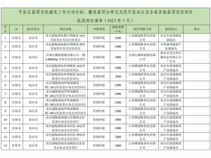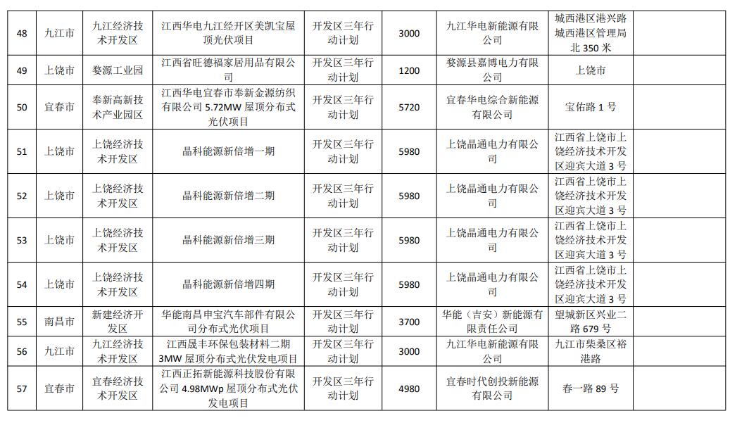 6月5日,江西開發(fā)區(qū)三年行動計(jì)劃、整縣開發(fā)試點(diǎn)及全省其他屋頂光伏項(xiàng)目2023年5月競爭性優(yōu)選結(jié)果線上公布,共計(jì)57個(gè)項(xiàng)目,規(guī)模268MW。根據(jù)《江西省整體推進(jìn)開發(fā)區(qū)屋頂光伏建設(shè)三年行動計(jì)劃(2022-2024年)》(贛發(fā)改能源〔2022〕27號)與《江西省能源局關(guān)于進(jìn)一步做好整縣屋頂分布式光伏開發(fā)試點(diǎn)工作