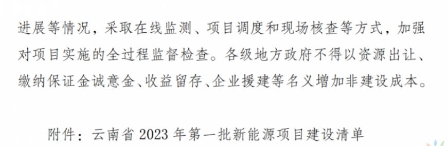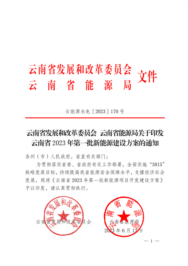 6月13日,云南發(fā)改委、能源局聯(lián)合印發(fā)《云南省2023年第一批新能源建設(shè)方案》。方案明確,為確保實(shí)現(xiàn)2023年新開工新能源1500萬千瓦、投產(chǎn)并網(wǎng)新能源項(xiàng)目裝機(jī)1500萬千瓦的目標(biāo),納入云南省2023年第一批新能源年度建設(shè)方案實(shí)施的項(xiàng)目共154個(gè),裝機(jī)1579.17萬千瓦。