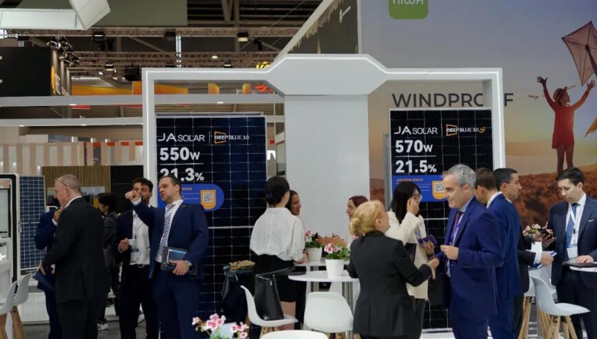 6月14日,為期三天的2023年Intersolar在德國慕尼黑國際博覽中心隆重開幕。晶澳科技攜DeepBlue 4.0 Pro和DeepBlue 3.0 Pro產(chǎn)品驚艷亮相A2.260展位,參展觀眾絡(luò)繹不絕。晶澳科技DeepBlue系列產(chǎn)品集高效率、高功率、高發(fā)電能力、高可靠性為一體,真正詮釋了“為客戶價(jià)值而生”的產(chǎn)品設(shè)計(jì)理念,為推動(dòng)全球綠色清潔能源轉(zhuǎn)型貢獻(xiàn)了智慧和力量。