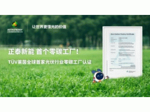 近日,正泰新能鹽城基地一期工廠完成全部綠色認證手續(xù),正式獲得TÜV萊茵頒發(fā)的零碳工廠認證證書。這是正泰新能的首個零碳工廠,也是TÜV萊茵在光伏行業(yè)認證的全球首家零碳工廠。正泰新能推動企業(yè)綠色低碳轉(zhuǎn)型,朝著碳中和目標(biāo)邁出了堅實一步。