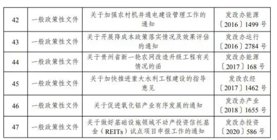 經(jīng)過清理,決定對47件規(guī)章、行政規(guī)范性和一般政策性文件予以廢止,其中包括《關(guān)于頒發(fā)〈水電廠水情自動測報(bào)系統(tǒng)管理辦法〉 的通知》(電安生〔1996〕917號)等多項(xiàng)跟能源有關(guān)文件。