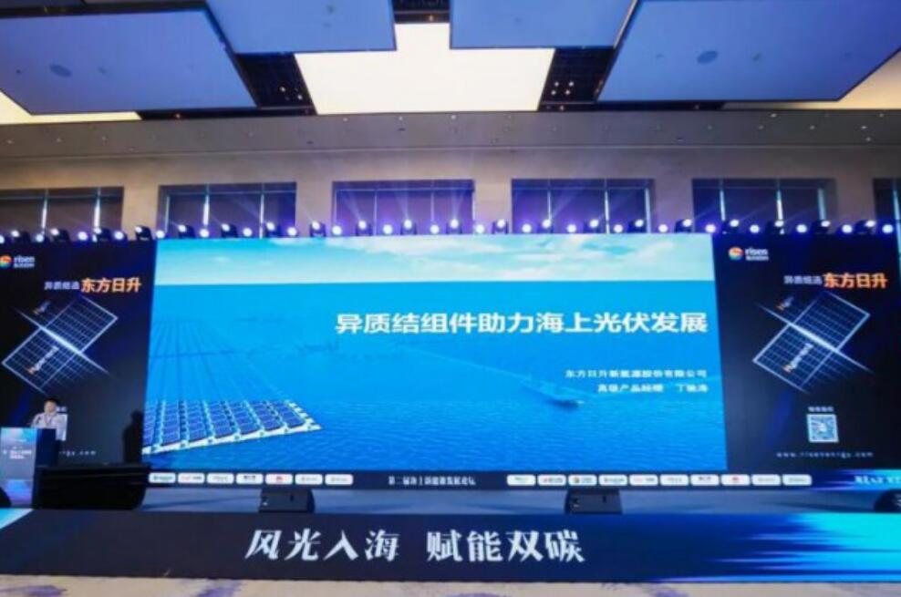 東方日升高級產(chǎn)品經(jīng)理丁馳濤應(yīng)邀出席論壇并發(fā)表了《異質(zhì)結(jié)組件助力海上光伏發(fā)展》的主題演講,結(jié)合海上環(huán)境對光伏組件的要求,全面分享東方日升針對海上應(yīng)用場景所開發(fā)的高效組件解決方案,為推動(dòng)海洋能源高質(zhì)量發(fā)展提供創(chuàng)新思路。