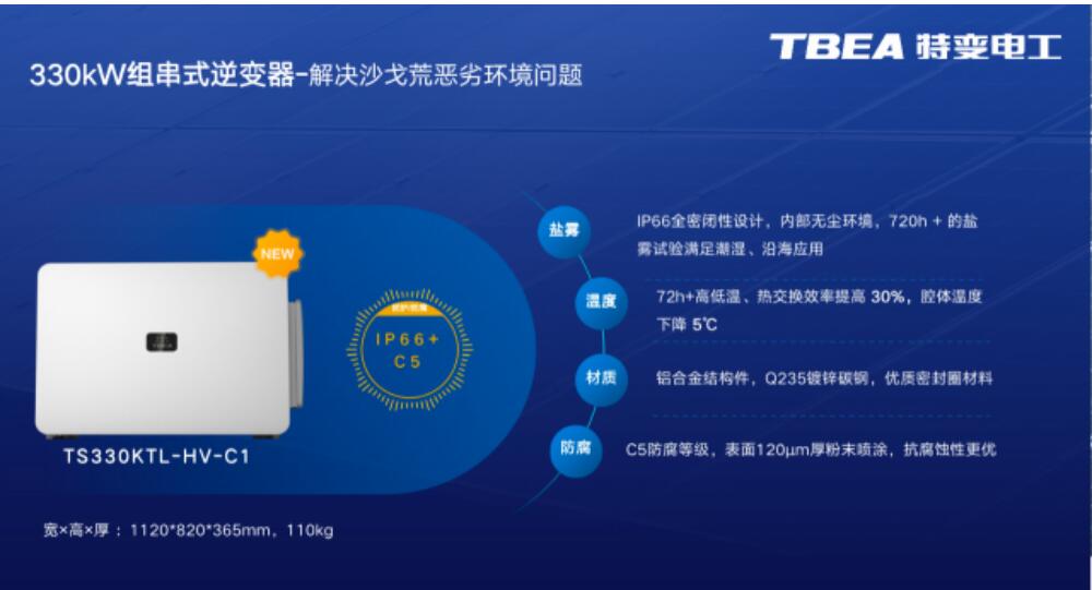 但沙戈荒項(xiàng)目面臨現(xiàn)場(chǎng)環(huán)境差、運(yùn)維難度大、電網(wǎng)薄弱等特點(diǎn),因此對(duì)于光伏產(chǎn)品的環(huán)境適應(yīng)能力、運(yùn)維管理、產(chǎn)品設(shè)計(jì)以及電網(wǎng)支撐能力要求更高。針對(duì)沙戈荒惡劣環(huán)境故障率高等問(wèn)題,特變電工新能源公司330kW組串式逆變器IP66全密閉性的設(shè)計(jì),可實(shí)現(xiàn)內(nèi)部無(wú)塵環(huán)境,滿足C5防腐等級(jí),表面120μm厚粉末噴涂,抗腐蝕性更優(yōu)。產(chǎn)品采用先進(jìn)的控制算法,包括有源阻尼,阻抗重塑,中點(diǎn)電位平衡控制算法,無(wú)功主動(dòng)補(bǔ)償算法等,實(shí)現(xiàn)了極弱電網(wǎng)適應(yīng)性,可保障在SCR=0.97,串補(bǔ)系數(shù)≤0.7的極端工況下可靠并網(wǎng),并通過(guò)高低電壓穿越測(cè)試。