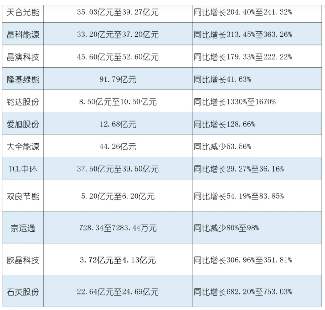 光伏上市公司2023年上半年度業(yè)績報告/預(yù)告