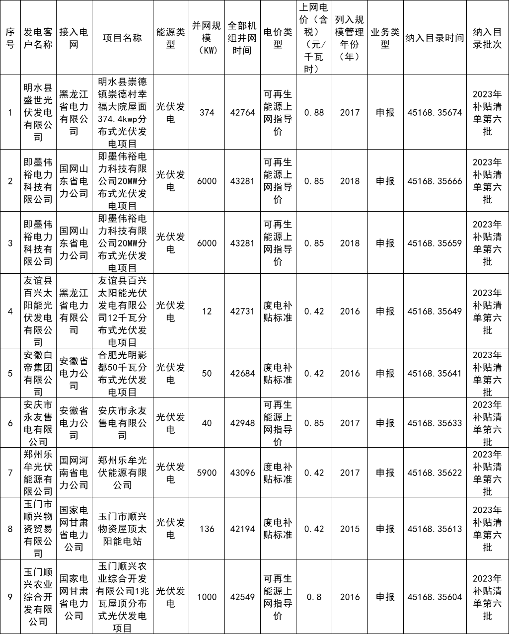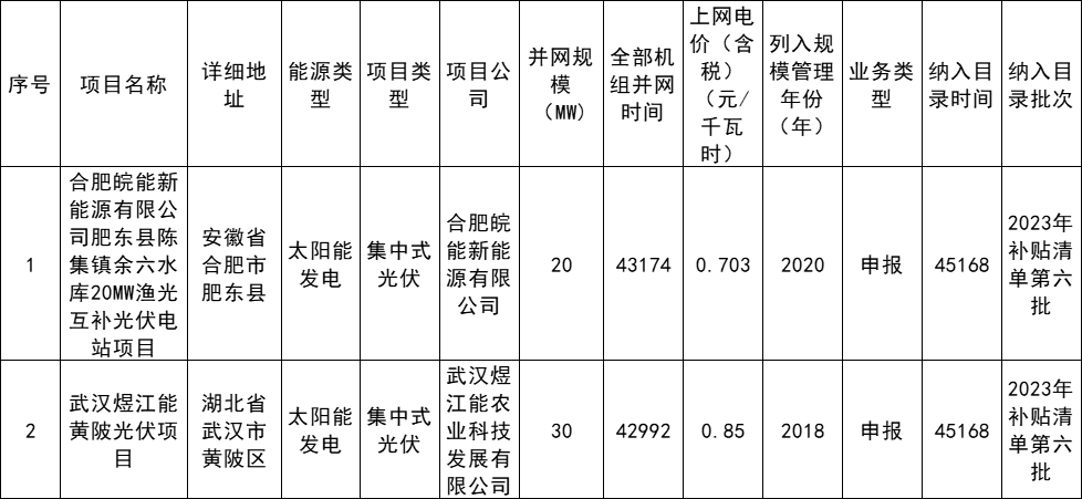 8月31日,國家電網(wǎng)發(fā)布《關(guān)于公布2023年第六批可再生能源發(fā)電補貼項目清單的報告》,此次納入2023年第六批可再生能源發(fā)電補貼清單的項目共11個,核準/備案容量83.4MW,其中:集中式發(fā)電項目2個、核準/備案容量50MW,分布式發(fā)電項目9個、核準/備案容量33.4MW。此次變更可再生能源發(fā)電補貼清單的項目共18個,核準/備案容量74.7MW,其中:集中式發(fā)電項目3個、核準/備案容量70MW,分布式發(fā)電項目15個、核準/備案容量4.7MW。