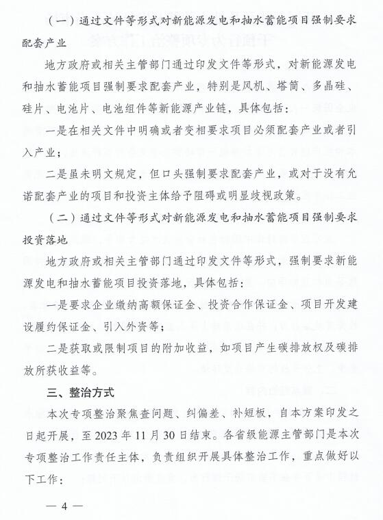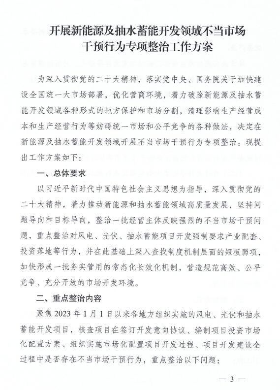 附《國家能源局綜合司關于印發(fā)<開展新能源及抽水蓄能開發(fā)領域不當市場干預行為專項整治工作方案>的通知》: