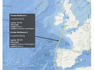 這個(gè)項(xiàng)目名為“Mammoth Xlinks”,計(jì)劃將3.6GW新能源電力通過長達(dá)3800km的輸電線路從非洲的摩洛哥輸送到英國,其中大部分是海底電纜。