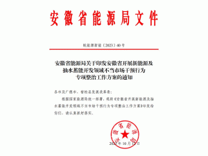 日前,安徽省能源局發(fā)布開展新能源及抽水蓄能開發(fā)領(lǐng)域不當(dāng)市場干預(yù)行為專項整治工作方案。