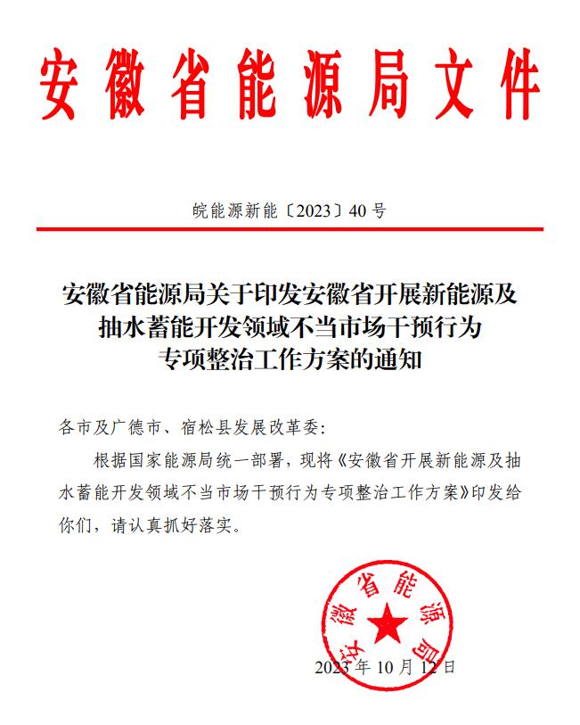 安徽省開展新能源及抽水蓄能開發(fā)領(lǐng)域不當(dāng)市場干預(yù)行為