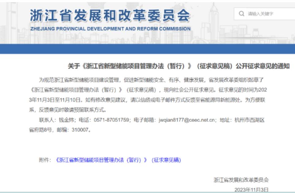 日前,浙江省發(fā)改委印發(fā)《新型儲(chǔ)能項(xiàng)目管理辦法(暫行)》公開征求意見。