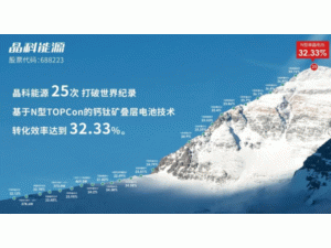 此外,晶科能源基于N型TOPCon的鈣鈦礦疊層電池研發(fā)也取得重要突破,經(jīng)中科院上海微系統(tǒng)與信息技術(shù)研究所檢測,其轉(zhuǎn)化效率達(dá)到32.33%,大幅提升了同類疊層電池的轉(zhuǎn)換效率水平。