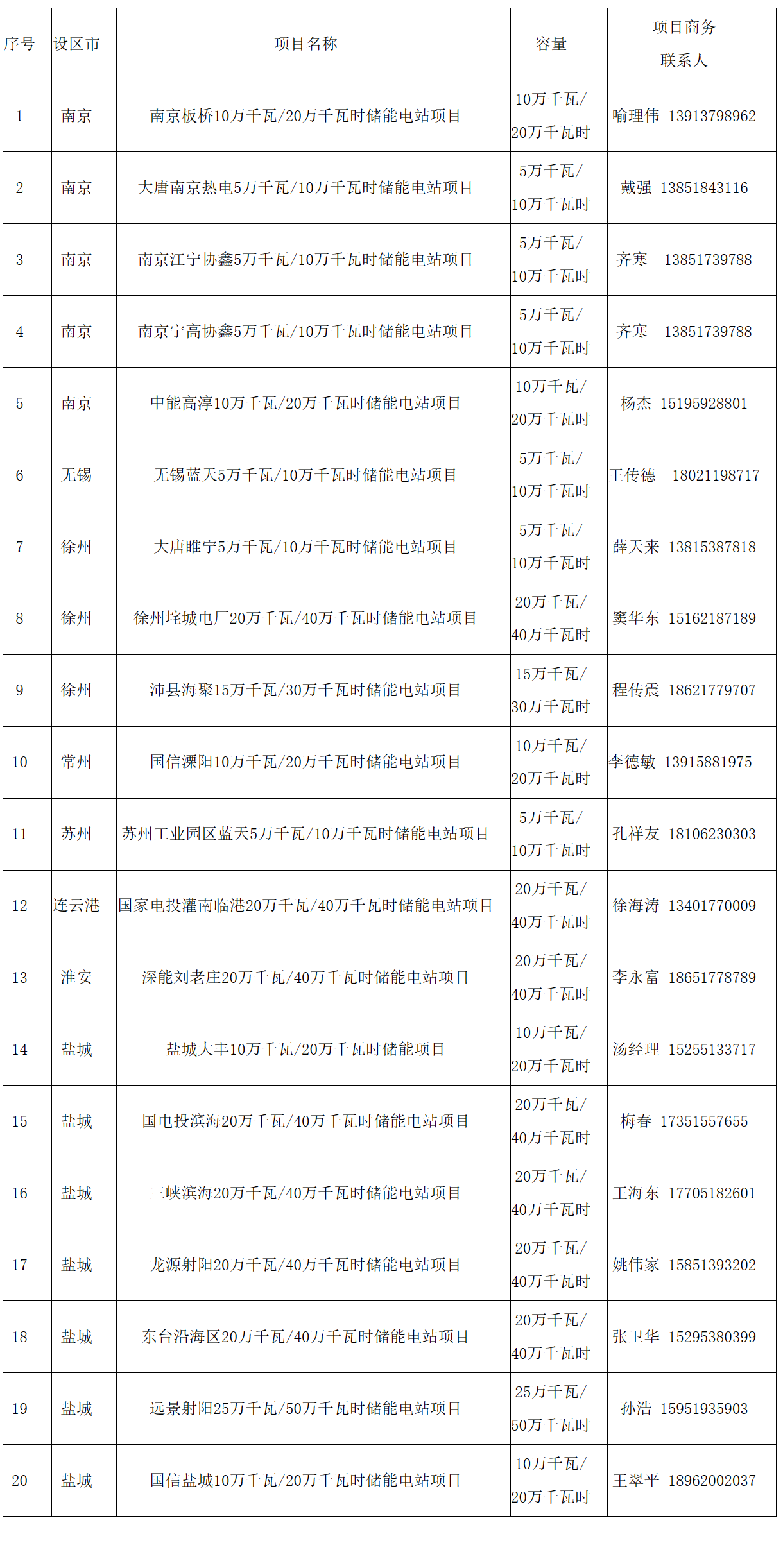 江蘇省發(fā)布已納規(guī)獨立新型儲能項目簡要情況