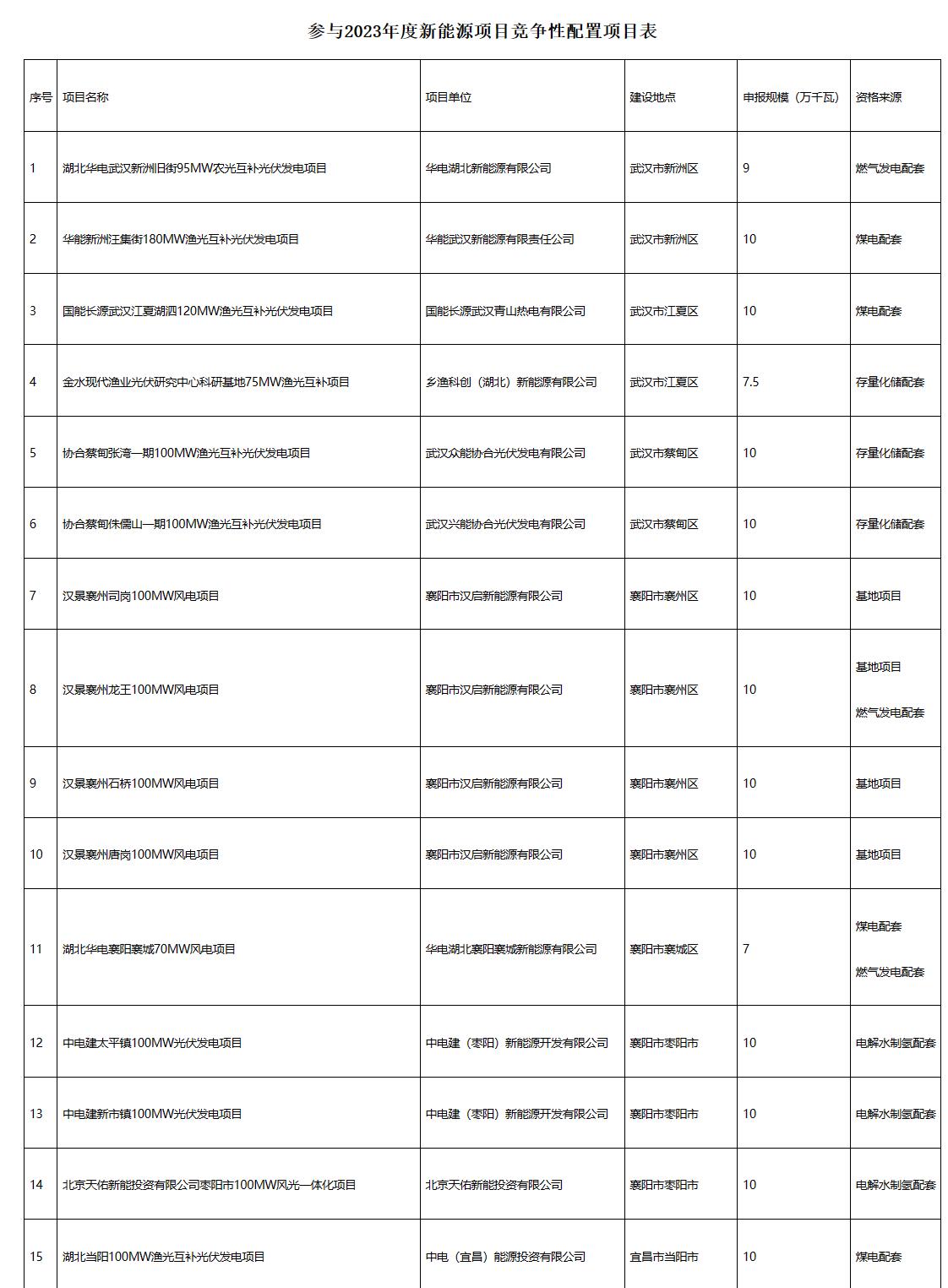 11月24日,湖北省能源局公示2023年新能源競配項目,參與競配的新能源發(fā)電項目共有100個,總?cè)萘?.1GW,經(jīng)審核:76個項目(總?cè)萘?85.85萬千瓦)符合資格條件,擬同意參與競配。24個項目(總?cè)萘?24.9萬千瓦)不符合資格條件,擬暫不安排參與競配。