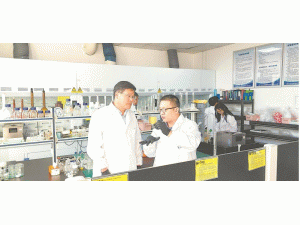 研究人員對鈣鈦礦太陽能電池質量進行分析。 本報通訊員 姚 潔 攝