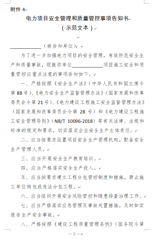 4.電力項目安全管理和質(zhì)量管控事項告知書(示范文本)