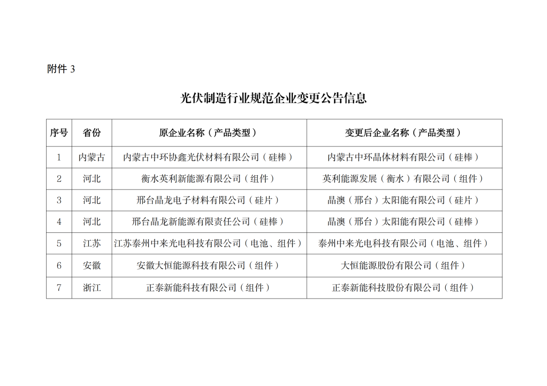 3.光伏制造行業(yè)規(guī)范企業(yè)變更公告信息