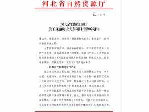 從河北省自然資源廳獲悉:12月29日,河北省自然資源廳發(fā)布關(guān)于規(guī)范海上光伏項(xiàng)目用海的通知,為推進(jìn)海上光伏產(chǎn)業(yè)有序發(fā)展,提高海域資源利用效能,規(guī)范海上光伏項(xiàng)目用海,在借鑒其他省份管理經(jīng)驗(yàn)的基礎(chǔ)上,結(jié)合河北省實(shí)際,研究起草了《關(guān)于規(guī)范海上光伏項(xiàng)目用海的通知》(以下簡稱《通知》)。