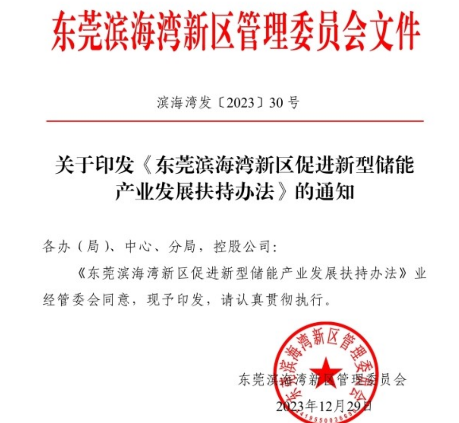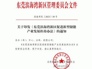東莞濱海灣新區(qū)促進(jìn)新型儲(chǔ)能產(chǎn)業(yè)發(fā)展扶持辦法