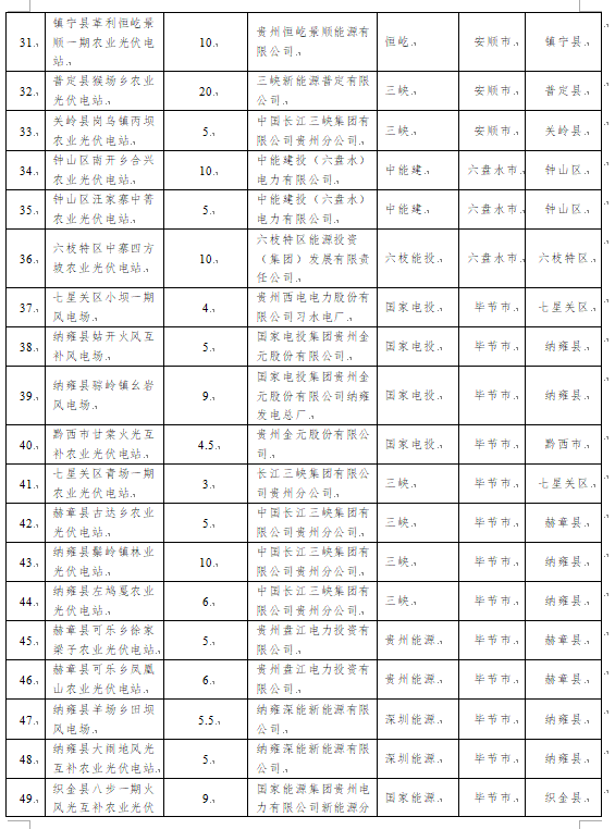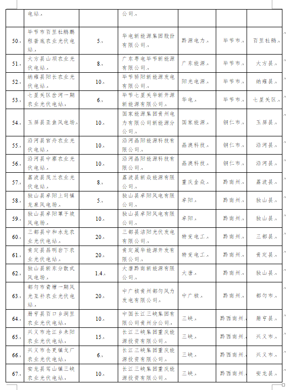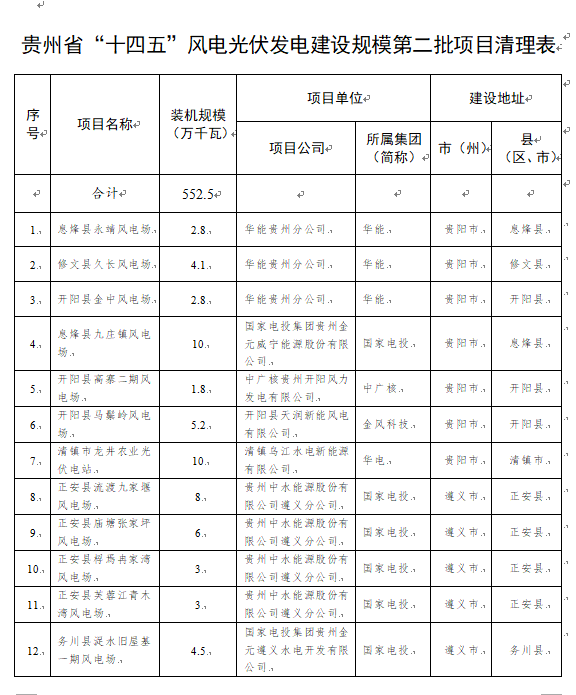 貴州省“十四五”風(fēng)電光伏發(fā)電建設(shè)規(guī)模第二批項(xiàng)目清理表