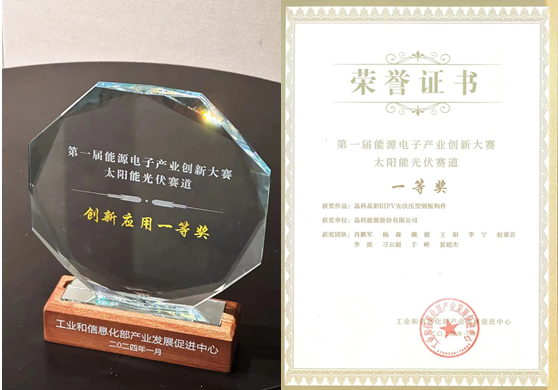 晶科能源參賽作品「晶科晶彩BIPV光伏壓型鋼板構(gòu)件產(chǎn)品」,經(jīng)過審查、初賽、決賽層層角逐,在174項(xiàng)作品中脫穎而出,榮獲太陽能光伏賽道創(chuàng)新應(yīng)用類一等獎(jiǎng)!