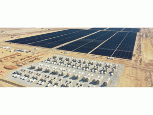 這個(gè)太陽(yáng)能發(fā)電場(chǎng)規(guī)模龐大,占地4600英畝,由190萬(wàn)塊美國(guó)First Solar公司制造光伏組件構(gòu)建而成。其中太陽(yáng)能發(fā)電場(chǎng)裝機(jī)容量為875MW,以及近3.3GWh電池儲(chǔ)能系統(tǒng)。