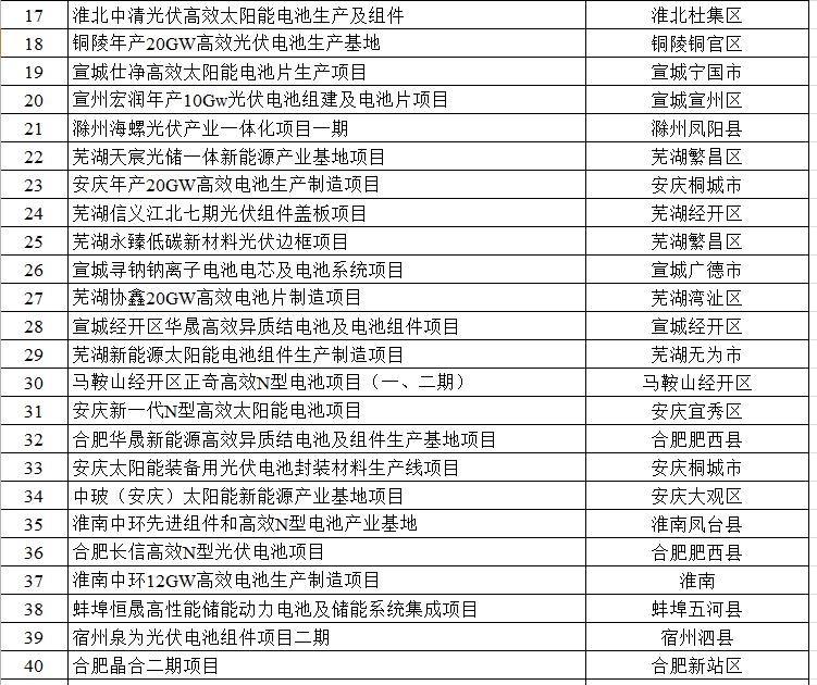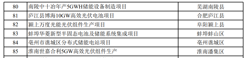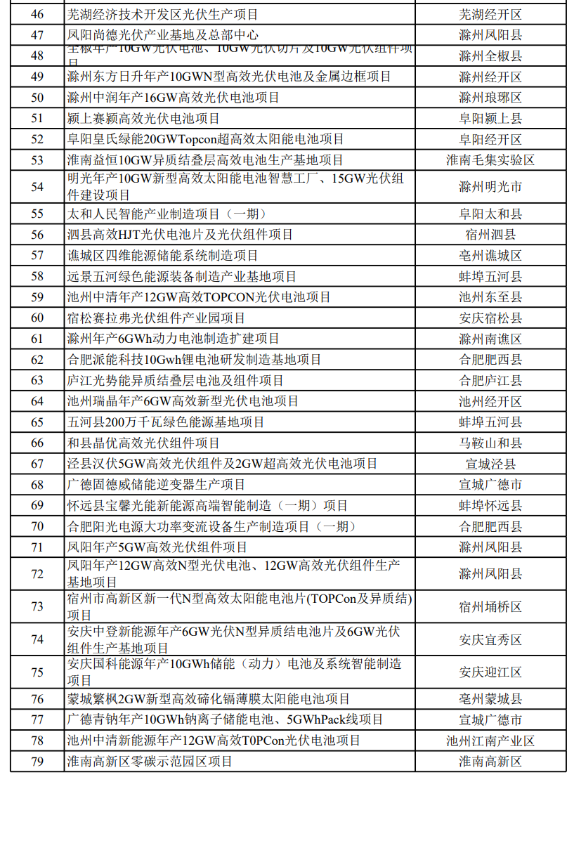 安徽省2024年重點(diǎn)項(xiàng)目清單分別為產(chǎn)業(yè),基礎(chǔ)設(shè)施和社會民生及其他三大類,其中,光伏產(chǎn)業(yè)名單如下: