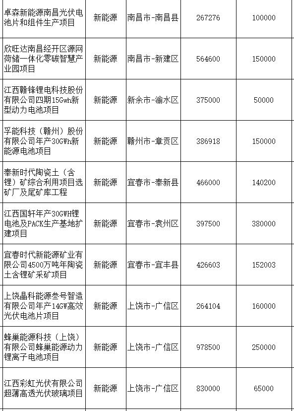 日前,江西省發(fā)展改革委發(fā)布關于印發(fā)江西省2024年示范引領性項目清單的通知,為貫徹落實《江西省實施項目帶動戰(zhàn)略“十百千萬”工程行動計劃(2024-2026年)》要求,扎實推進“十百千萬”工程,擴大有效益的投資,省發(fā)展改革委會同各地、各有關單位從2024年省大中型項目中篩選了130個示范引領性項目清單,其中,新能源項目10個,如下表: