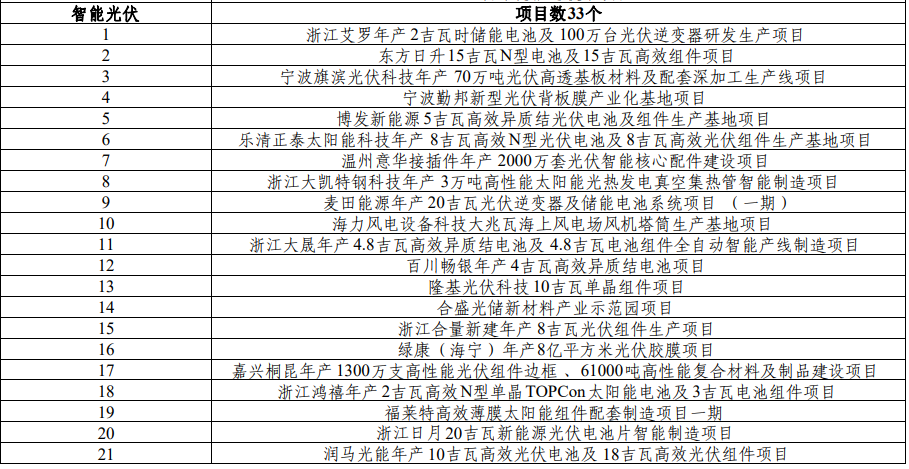 3月12日,浙江省擴(kuò)大有效投資 “千項(xiàng)萬(wàn)億”工程2024年重大建設(shè)項(xiàng)目實(shí)施計(jì)劃項(xiàng)目表公布,含多個(gè)電力能源項(xiàng)目,其中,智能光伏項(xiàng)目33個(gè)。清潔能源保供領(lǐng)域項(xiàng)目中,風(fēng)電項(xiàng)目10個(gè),光伏發(fā)電項(xiàng)目11個(gè)。