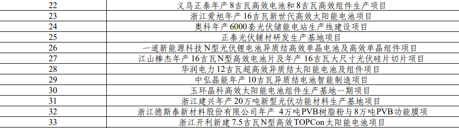 項(xiàng)目表中光伏項(xiàng)目如下: