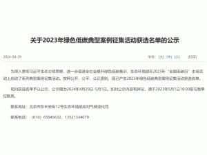 生態(tài)環(huán)境部公示2023年綠色低碳典型案例征集活動(dòng)獲選名單