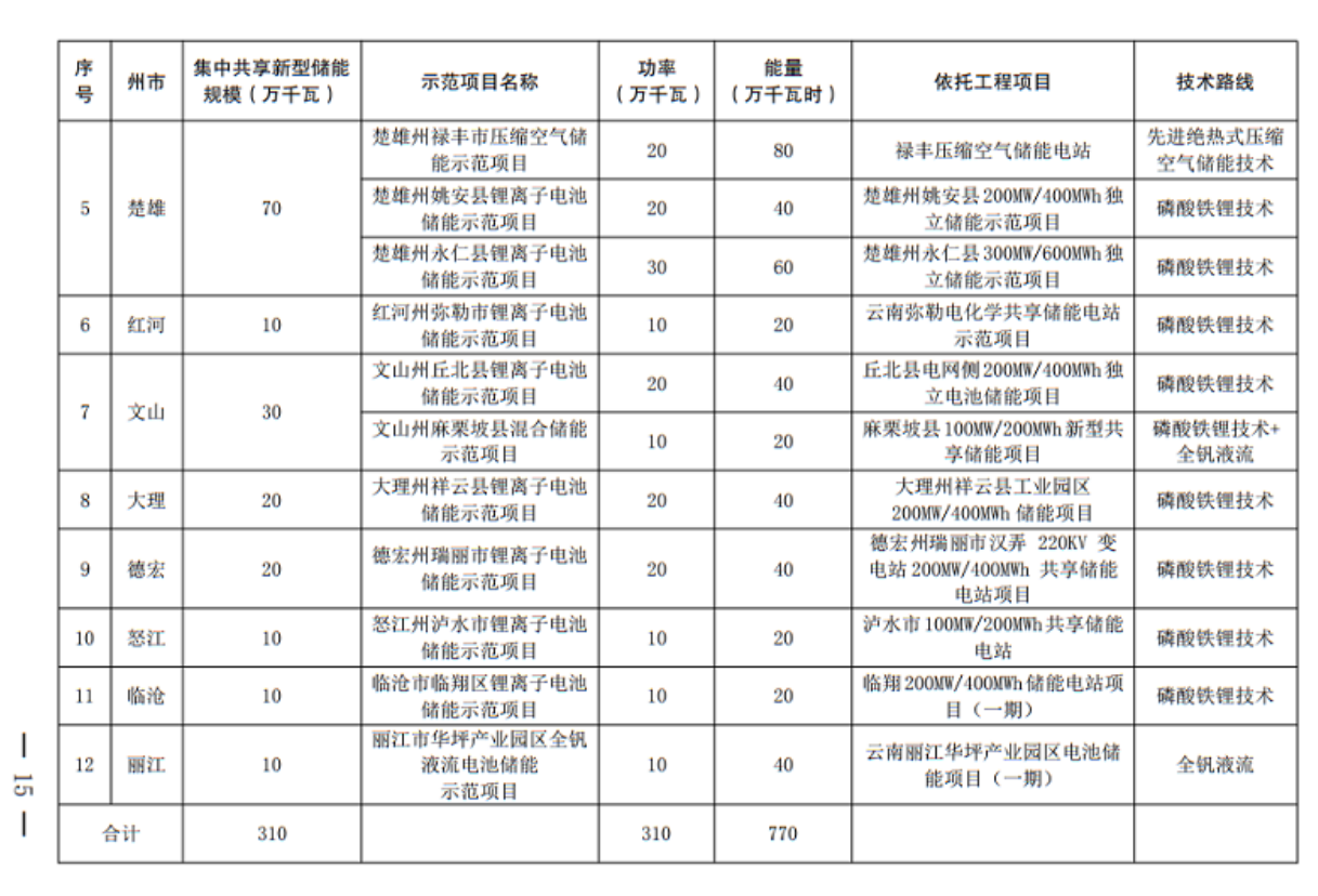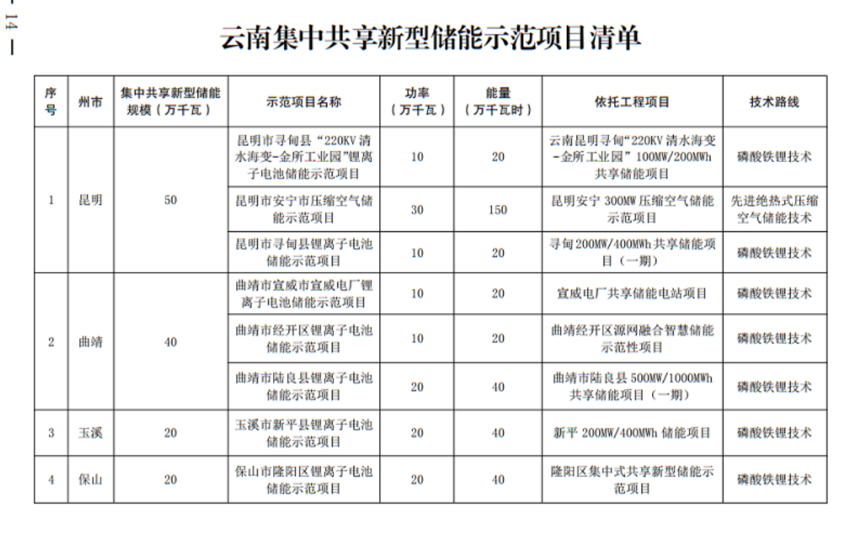 云南集中共享新型儲(chǔ)能試點(diǎn)示范項(xiàng)目清單如下: