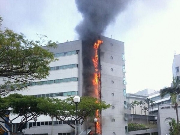 新加坡國立大學學校保衛(wèi)人員在周五下午2點25分接到火警報警,大量濃煙從E3A大樓樓頂冒出,大樓內及周邊師生隨后被立即疏散。新加坡民防部隊(SCDF)在2點38分趕到現(xiàn)場開始救火。據聯(lián)合早報報道,“當時連接一樓和頂層的排氣導管冒出黑色濃煙,一樓一間實驗室著火,火勢順著高約20公尺的排氣導管擴散開來。消防員著手控制頂層的火勢,同時避免火勢向外擴散!闭麄火勢在晚間7點10分徹底撲滅。