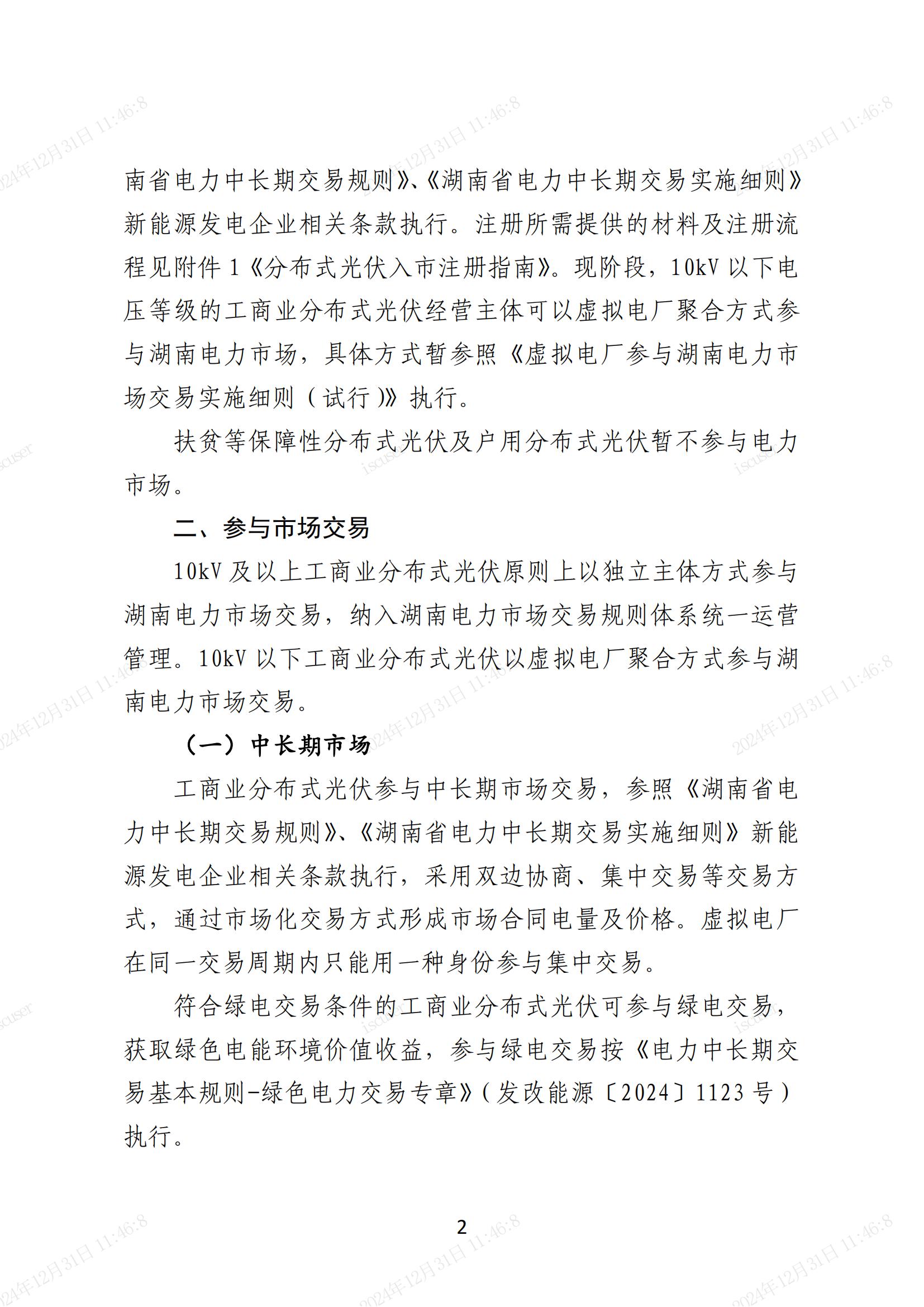 12月30日,湖南電力交易中心發(fā)布《湖南工商業(yè)分布式光伏參與市場交易實施細則(試行)》 明確 ,10kV及以上工商業(yè)分布式光伏原則上以獨立主體方式參與湖南電力市場交易,納入湖南電力市場交易規(guī)則體系統(tǒng)一運營管理。10kV以下工商業(yè)分布式光伏以虛擬電廠聚合方式參與湖南電力市場交易。