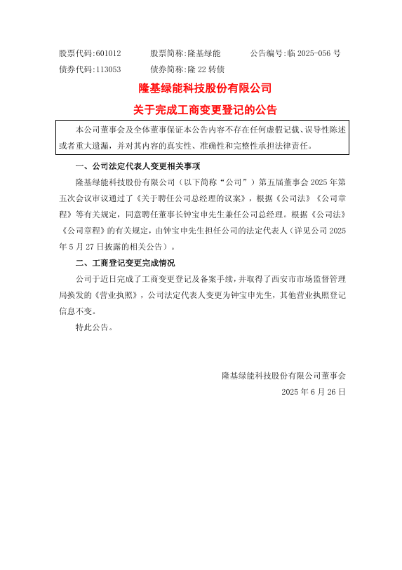 隆基綠能6月26日發(fā)布公告,公司第五屆董事會(huì)2025年第五次會(huì)議審議通過(guò)了《關(guān)于聘任公司總經(jīng)理的議案》,根據(jù)《公司法》《公司章程》等有關(guān)規(guī)定,同意聘任董事長(zhǎng)鐘寶申先生兼任公司總經(jīng)理。根據(jù)《公司法》《公司章程》的有關(guān)規(guī)定,由鐘寶申先生擔(dān)任公司的法定代表人。