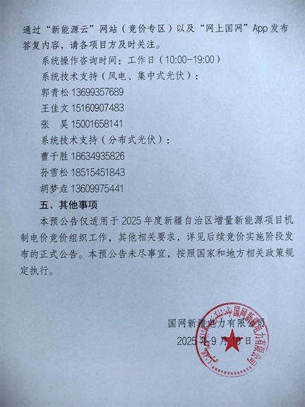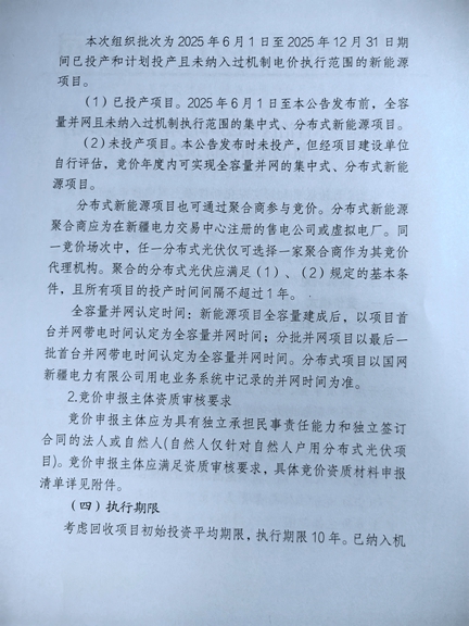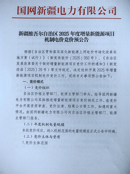 9月10日,新能源云平臺發(fā)布新疆自治區(qū)2025年度增量新能源項目機制電價競價預(yù)公告,公告顯示,本次組織批次為2025年6月1日至2025年12月31日期間已投產(chǎn)和計劃投產(chǎn)且未納入過機制電價執(zhí)行范圍的新能源項目。