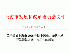 3月10日,上海市發(fā)展和改革委員會發(fā)布通知,組織開展2026年陸上風電、光伏電站開發(fā)建設(shè)方案申報。各區(qū)發(fā)展改革委、相關(guān)管委會3月31日前將相關(guān)材料報送發(fā)改委。