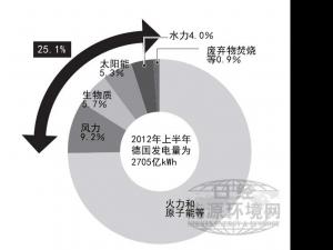 德國聯(lián)邦能源和水資源協(xié)會(BDEW,Bundesverband der Energieund Wasserwirtschaft)于2012年7月底宣布,2012年上半年德國的可再生能源發(fā)電量達(dá)到該國總發(fā)電量的25.1%。尤其是光伏發(fā)電(PV)的發(fā)電量增加明顯,同比增長了47%,一年即增至2011年約1.5倍。